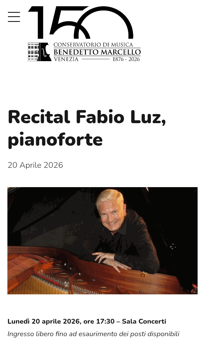 2014 se présente lumineuse, riche d'évènements inédits et de ré-éditions de grandes réussites de l'année précédente. Un somptueux nouveau programme de récital de Fabio Luz est affiché au Brésil, en Italie, en France; la deuxième édition de la série Sabato di Maggio aura lieu à l'Educatorio della Provvidenza à Turin, la première de la Fête du Paradis en Grèce - à l'île de Syros se fera en juillet avec des concerts et master classes dans le cadre de l'Exposition d'Art contemporain et du Syros International Film Festival au Théâtre Apollon; le Festival del Golfo se reproduit en août à San Marco di Castellabate (près de Naples) avec le concours de Fabio Luz et de nombreux maîtres internationaux. Il vient de jouer pour la VII Rencontre Internationale de Pianistes du Conservatoire de Tatuí (Brésil) le Concerto en sol de Ravel sous la direction de João Maurício Galindo.